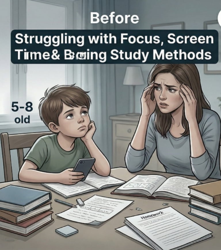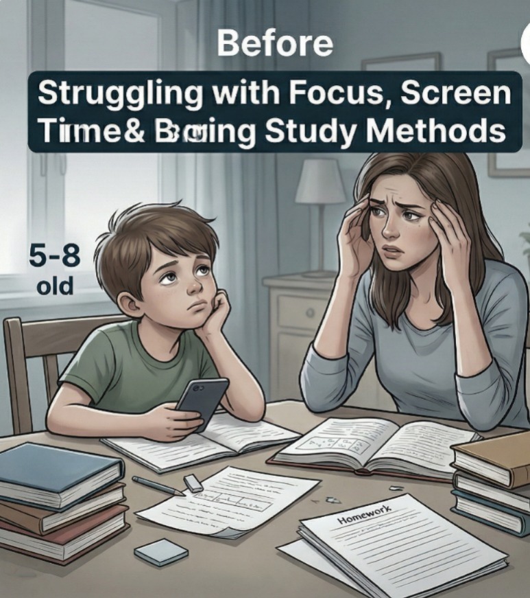 Most available study materials are either too boring or not designed for young minds. As a result, children lose confidence, develop weak fundamentals, and start avoiding studies altogether.